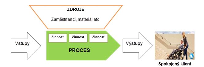 Proces bývá definován jako soubor vzájemně působících činností, které přeměňují vstupy na výstupy. Cílem organizace by mělo být zajistit efektivní a účelné fungování každého procesu tak, aby byly naplněny hlavní činnosti organizace. Aby mohla organizace efektivně a správně fungovat, je nezbytné se zaměřit právě na část, jež přeměňuje vstupy na požadované výstupy (v případě analyzované organizace služby poskytované/nabízené klientům).