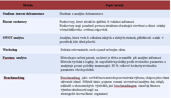 Úspěšná realizace každého procesního auditu/analýzy vyžaduje udržet stanovený postup a k výstupu v podobě závěrečné zprávy směřovat prostřednictvím stanovených metod a nástrojů.