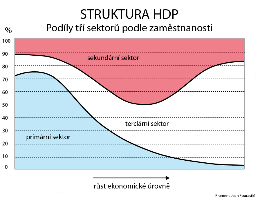 Tomu odpovídá i vývoj v jiných zemích na západ od ČR, jak ukazuje obrázek. Ve vyspělých zemích západní Evropy, USA rostou z hlediska podílu na zaměstnanosti i HDP právě služby (terciární sektor), naopak zemědělství (primární sektor), průmysl, těžba (sekundární sektor) jsou postupně utlumovány.